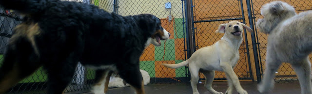 with a whole lot of personality, and happiness to share with everyone. We noticed right off the bat that it wasn't going to take long for this girl to make some friends. As soon as she started meeting the other dogs that came to our Medium Dog Program today, she was a social butterfly.